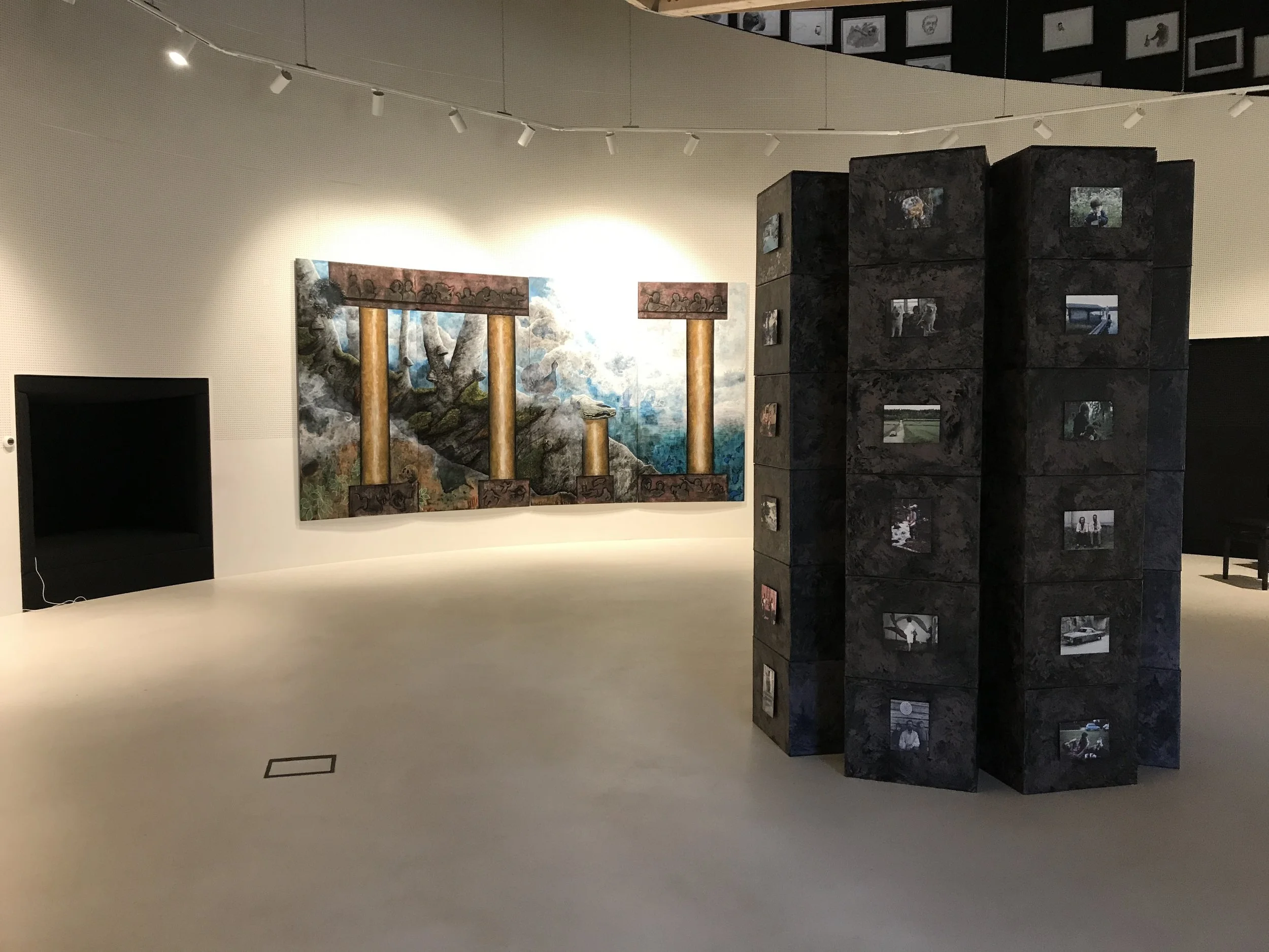 o Näyttelyn teokset, maalaukset, piirustukset ja installaatio, liittyvät vuosina 2016–2019 toteuttamaani projektiin Kuvia Piirtäjän Päiväkirjoista. Projekti perustui Helsingin Sanomien lehdistökuvien arkipäivän informaatioon. Kolmen vuoden ajan päivittäin sattumanvaraisesti valitsemani lehdistökuva muuttui piirustuksessa uudeksi kuvaksi, piirtäjän mielenmaisemaksi, hetken tarinaksi. Piirustuksista muodostunut kuva-arkisto on ollut ja on edelleen jatkuvan innoituksen lähde, uusien teosten taustamateriaalia. Arkiston pohjalta on syntynyt suuria sekatekniikalla vanerille toteutettuja teoksia, akryyliväreillä paperille maalattuja töitä ja arkipäivän materiaaleista koottuja installaatioita. Teosten oleellisena piirteenä on niiden voimakas fyysinen käsittely, materiaalien kokeilu ja pintojen uudelleen työstäminen.
